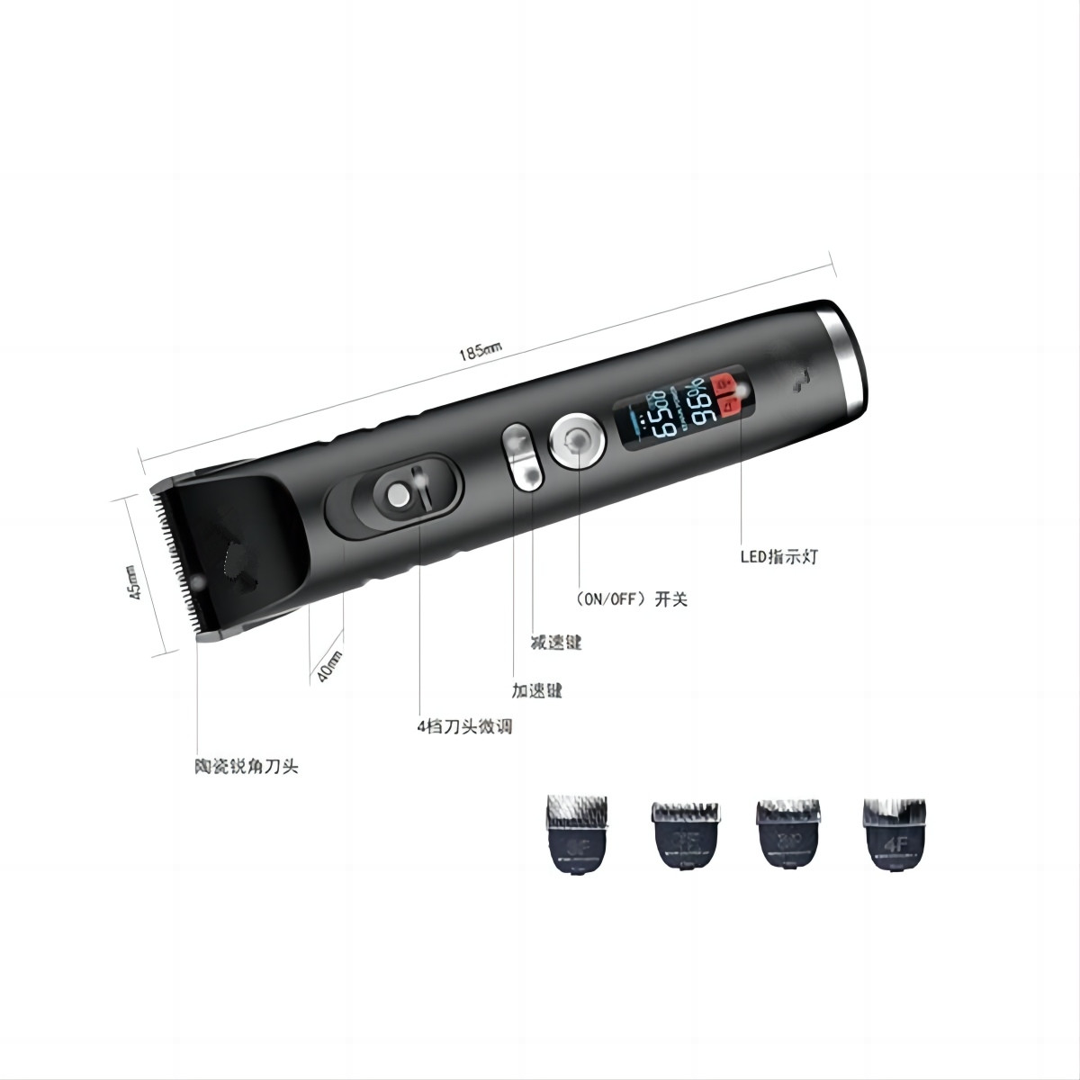 • A tela LED de alta definição exibe o nível da bateria em tempo real, evitando interrupções de energia durante a escovação e garantindo serviços de escovação em casa ou no salão de beleza mais tranquilos.