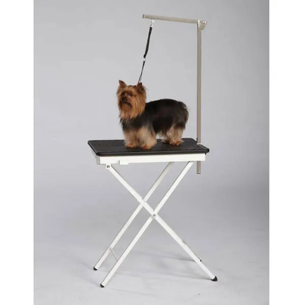 - Antes de usar, certifique-se de que a mesa de tratamento para cães pequenos esteja totalmente desdobrada e travada com segurança.